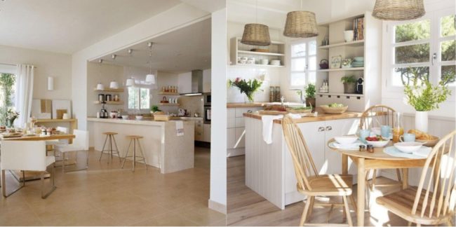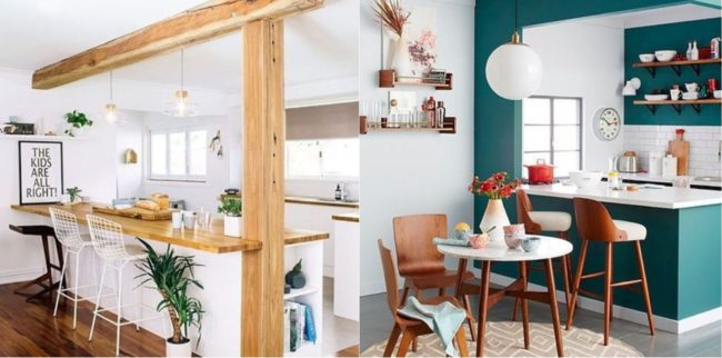 Si prefieres que el tabique esté abierto del todo puedes dejar un murete a media altura que te sirva como barra de cocina. Con esta forma se crean dos ambientes independientes y se gana un espacio donde, por ejemplo, desayunar o comer. Esta reforma es muy habitual sobre todo en espacios pequeños, ya que la barra sirve como mesa para una o dos personas. En los bajos de la barra se pueden colocar asientos plegables o estantes para guardar pequeños utensilios, por ejemplo.